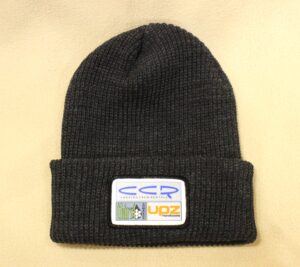 USA-made, 100% acrylic ribbed cuffed knit beanie with CCR, Thirst Snowboards and UPZ Hardboots logos.